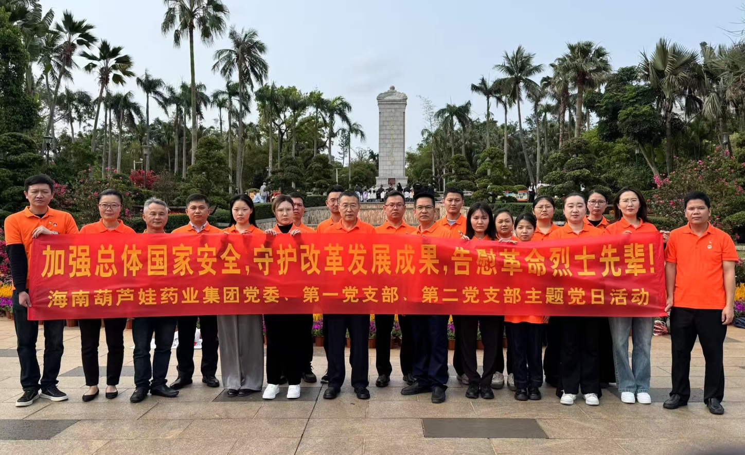 2025年4月3日上午,春光和煦,温暖宜人。根据海南人生就是博药业集团党委2025年党建工作计划和深入贯彻中央八项规定精神学习教育计划安排,集团党委组织第一党支部、第二党支部在琼部分党员前往海口公园内的海南革命烈士纪念碑和冯白驹纪念亭开展“加强总体国家安全,守护改革发展成果,告慰革命烈士先辈! ”主题党日活动。
